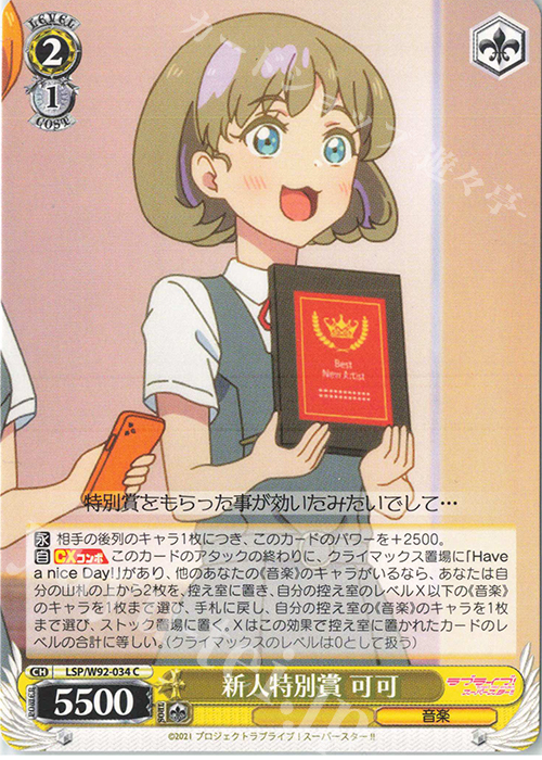トップ > ヴァイスシュヴァルツ 買取・通販・攻略 > ラブライブ!スーパースター!! 販売 > C 新人特別賞 可可