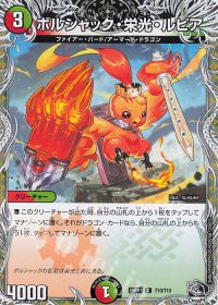 まず最初に目指すのは5マナもしくは6マナへ到達することです。2ターン目<メンデルスゾーン>2ブーストからの3ターン目に5マナや、3ターン目<ボルシャック・栄光・ルピア>や<龍の呼び声>2ブーストからの4ターン目に6マナです。