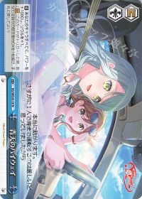 - 【自】[手札を1枚控え室に置く]このカードが手札から舞台に置かれた時、あなたはコストを払ってよい。そうしたら、あなたは自分の山札の上から1枚を公開し、自分の控え室のレベルX以下のキャラを1枚選び、手札に戻す。Xは公開されたカードのレベルに等しい。(CXのレベルは0として扱う。公開したカードは元に戻す)【自】【クロック】シフトレベル0(あなたのメインフェイズの始めに、あなたは自分の手札の青のカードを1枚とクロック置場のこのカードを選び、入れ替えてよい)