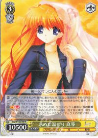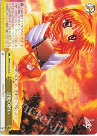 <憧れに並ぶ為に メイショウドトウ>の互換で「key」及び「Summer Pockets」で使用できるカードです。似たようなカードとして<千年の想い 神奈>がありましたが、リバース時と使えるタイミングが限られていたため、使い方と色によりデッキによって使い分けができるようになりました。