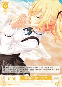 相手キャラクターをリバースすることで控え室からキャラクターカードを加え、1枚ディスカードする手札交換テキストも後続に活かすことができます。<1000年ぶりの再会 パトリシア&ノラ>と相互共鳴カードのため4枚必須採用とさせていただきました。
