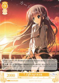 【永】 あなたのターン中、他のあなたの〈同OS〉のキャラがいるなら、このカードのパワーを+1500。【自】 共鳴 [手札の「櫻の芸術家 草薙直哉」を1枚公開する] あなたのCXフェイズの始めに、コストを払ってよい。そうしたら、そのターン中、このカードのソウルを+1。