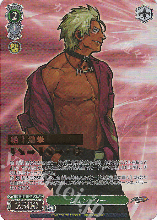 トップ > ヴァイスシュヴァルツ 買取・通販・攻略 > プレミアムブースター THE KING OF FIGHTERS 販売 > MAX シェン・ウー(箔押し入り)