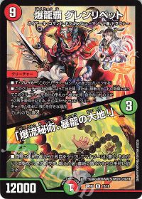 ウエポンだけではなく、ドラグハート・フォートレスにも新規が登場し、【巨大天門】も戦術の幅が広がりました。<ヘブンズ・ゲート>から<頂上接続 ムザルミ=ブーゴ1st>を連打すれば、どんなドラグハートでも思いのまま揃えることが出来ます。<静かなる龍跡 B=G=W>は手札とマナを増やせるので、リソース不足に陥りやすい【巨大天門】デッキでも、後続を確保することができ、盾も回復できるので、後手に回った場合でも、挽回することができます。また、<荒ぶる龍跡 B=G=R>は相手クリーチャーを破壊することができ、エレメント指定除去なので、同型対決のドラグハート・フォートレスやウェポン、タマシードやクロスギア等々、今まで手の届かなかった痒い所も破壊することができます。