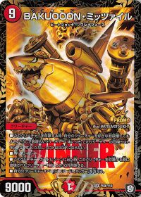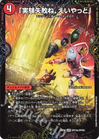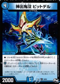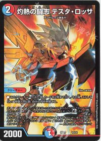 メタクリーチャー対策の希望の星。絶妙な数値ライン除去と立ちはだかるブロッカーを叩き潰そう。ロングゲームに持ち込まれた際の駆け引きの材料になりつつ基本最後にプレイするデュエルメイトになる為、ほぼ自動的に除去+2点→2点の4点持ちの生成になるカード。
