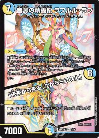 相手の呪文を咎めるツインパクトカード。【Dracheder'Bande】や【超次元ダーツ】を重く見て気合いの4投です。<切札勝太&カツキング -熱血の物語->や<双龍覇王 モルトVERSUS>から投げ続けましょう。<音卿の精霊龍 ラフルル・ラブ>から<音卿の精霊龍 ラフルル・ラブ>にチェンジを繰り返すだけでも、相手の戦術を大きく狂わすことができます。<禁断 -封印されしX->の封印落ちや盾落ちを考慮すると、採用枚数については妥協したくないですね。相手のデッキに呪文が採用されていない場合でも、呪文面で手札を潤しつつ、<「助けて!モルト!!」>を踏み唱え、そこから<夢双龍覇 モルトDREAM>経由で圧殺するプランも存在するので、腐る場面は少ないです。
