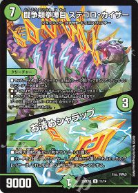 <地封龍 ギャイア>と比較した場合、エレメント指定で阻害するので、相手のタマシードやフィールドカードにも屈しないのが強みです。逆に相手のSTに脆いのが<暴龍のT ミリオンベジータ>の弱点ですが、味方全体に除去体制を付与できるので、そこまで心配する必要性はないです。