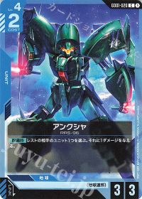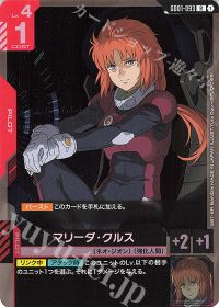 セット時HP3までのユニットをレストにできるカード。<リック・ディアス>の追加によりHP3以下が増えたので強い場面が増えている。またリンク先が【強化人間】と<マリーダ>、<フォウ>どちらもリンクユニットになるのでこのデッキでは多く活躍するカード。