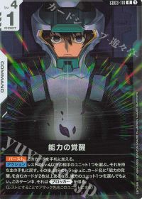 - 【アクション】レストのLv.4以下の相手のユニット1つを選ぶ。それを持ち主の手札に戻す。その後、自分のトラッシュに、カード名に「能力の覚醒」を含むカードが2枚以上あるなら、味方のユニット1つを選んでもよい。このターン中、それは《ブロッカー》を得る。