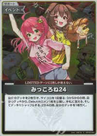ここにきてマリガン後にすごい手札を引いてしまいました。<Debutミオ> <1stミオ>×2 <用心棒おかゆ> <2ndおかゆ> <SorAZセレブレーション> <春先のどか>
