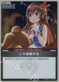 初手以外はドローで欲しいところが全て引けている中、最終的には2ndおかゆ・お弁当おかゆ・「ほうき星」でセンターとバックの沙花叉を取ることができ勝利。