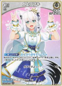 勘違いされがちですが「白上フブキがダウンさせたとき」ではなく「白ホロメンがダウンさせたとき」なので白上以外のデッキでも使えはしますし、逆に黄色の白上フブキがダウンさせたときは使用できません。
