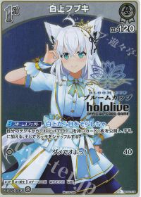 アヤカシヴァーミリオンで追加された<新規ころね>には、<ギフト2ndフブキ>の紫特攻が刺さるため相手の2ndをワンパンすることが可能であり、SP推しスキル「フブキングダム」によりライフ2からの<凸待ち>お見合いもする必要がないため、先攻ならば五分はあります。逆に後攻の場合フブキは2面取りがほぼ不可能であるため2ndが順当に殴り合って負けることになります。