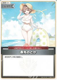 - 汎用カードの再録も潤沢で、特に今回<春先のどか>が新たに水着イラストでの収録!