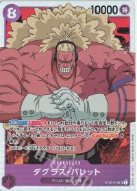 キャラのレストと速攻を両方持つ大型キャラですが、デッキ内はなるべく《麦わらの一味》特徴でまとめたいうえ、元々強力な大型はある程度揃っていたので、クリティカルな強化というわけではありませんでした。 「紫ルフィ」が注目されたのは新弾の追加ではなく、「黒イム」、「赤青エース」に対して、<5マゼラン>や<8バレット>が刺さりやすいからという理由で注目されはじめました。