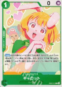 しかし実際使ってみると最速で出し、その場にいるカードとリーダーで攻撃し、その後最速で出した<8コスキャロット>をアタッカーとして2回攻撃させる動きも大変強いです。