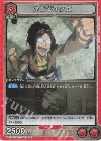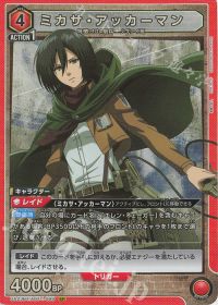 。本来BP3500以下しか除去できない<4/1ミカサ・アッカーマン>をBP4500以下除去にすることができ、中盤以降も相手のアタッカーに対して有効な除去手段になります。亜 フロントLにある場合は、登場時効果をノーコストで発動することができるため、状況に応じてフロントLに移動させたいですが、自身のBPが3000のため注意が必要です。