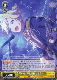 新弾の<口にできない言葉 鏡音リン>より連動<咲希>を探しやすいので寧々になりました。レベル置場にも置きたいカードで、使用頻度も高いので4枚。想いをこめた演奏で 鏡音レン