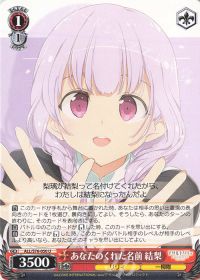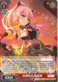 汎用的な効果で、早出し条件は4体以上。登場時に手札1枚でクロックを1枚ストックに送る回復効果を持っていて、味方がいればアンコール効果を持っていますがアンコールの条件が控え室のキャラをクロックの下に置く効果という点が少し珍しいでしょうか。今弾だとCXコンボと書いてあるレベル3は回復効果を持っていないので、出来るだけレベル3の早い段階でキャラ展開をして行きたいと考えたため、このアンコール効果はむしろ良いのではないかと考えて採用しています。