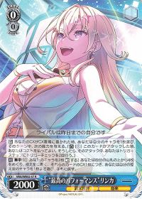 派手なCXコンボを持ったL3キャラ。おそらく今回の弾の目玉的カードです。2パターンのCXコンボを持っており、特に一つ目の舞台のキャラを全て控え室に置く効果はVIRTUAL GIRLを選択する理由になりそうな特徴的な効果です。