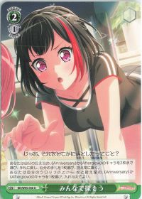 <お忍び学園祭 中野 一花>の互換カードになります。同時に<"In the name of BanG Dream!"美竹蘭>を収録していることもあり、特徴以外の差別化点としてレベル2で使えることとソウルをプラスする効果を上手く使用したいですね。
