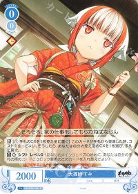 | 【永】 あなたのターン中、他のあなたの〈同OS〉のキャラがいるなら、このカードのパワーを+1500。【自】 共鳴 [手札の「櫻の芸術家 草薙直哉」を1枚公開する] あなたのCXフェイズの始めに、コストを払ってよい。そうしたら、そのターン中、このカードのソウルを+1。 |
