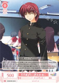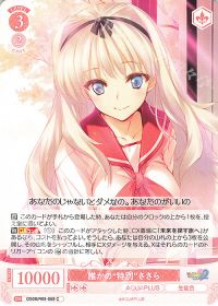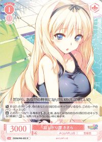 登場時に舞台の<気の置けない男友達 雄二>を控え室に置く事でキャラ1体に「このカードのダメージがキャンセルされた時に1点バーン」を付与します。もう一つの効果は付与する物と同じくダメージがキャンセルされたら1点バーンです。気の置けない男友達 雄二は控え室に行った時に2ストックで山札からキャラをサーチ出来るので次の環や<3連動のささら>を回収するなど動きの柔軟性があり、ささらにキャンセルバーンを付与するか自身に付与しキャンセルバーン2回にするなど詰め方の選択肢を作りやすく、<誰かの"特別" ささら>の横に置くカードとしてはベストだと思います。たま姉たまんねぇ...