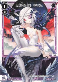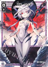 虚幸の閻魔姫 ウリス>は、ルリグアタック時、トラッシュに悪魔のシグニが15枚以上あれば黒1エナを支払うことで相手にガード不可を押し付けることができます。黒版の<閃花繚乱 花代・参>のようなルリグですね。