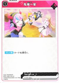 たった2コストでアタック+3コスト分のメモリアを使えるカードで、<C偉大な栄冠>(2コスト80ダメージアップ)や<RなずNEWS>(1コスト2ドロー)など、打点効率とは別の価値があるカードを輝かせることができます!