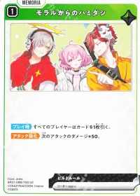 クロスタはPPを余らせてドローができるゲームシステムではありますが、当然手札を保ちながらダメージを出し続けたほうが効率的です。それを実現できるUCモラルからのハミダシは、高ダメージの出せるカードと組み合わせてダメージレースの補助ができると良いかなと思います!