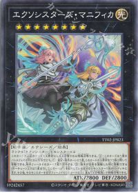 「エクソシスター」下級がすべて対応ステータスなため、併せ持ちする手数としてはかなり強く、同名を含めたすべての組み合わせで<エクソシスター・マルファ>をサーチしながら<エクソシスター・ミカエリス>をX召喚してそちらのサーチを起動できます。