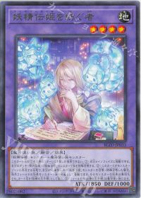 <妖精伝姫を語る者>は、「妖精の王子様」を融合素材にした場合、相手フィールドのカードを全て破壊し、破壊した数×500のバーンダメージを与える効果を持ちます。