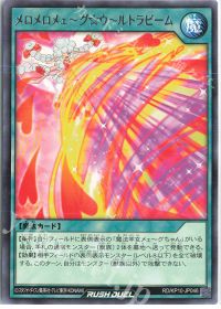 自分フィールドの表側表示の獣族モンスターをコストに、フィールド・墓地の獣族で「メェ~界」のフュージョン召喚をするカード!コストのモンスターをフュージョン召喚に使ったり、マキシマムモンスターを墓地へ送って<魔法羊女メェ~グちゃん>扱いにしてからフュージョン召喚するなど、かなり便利なカード!