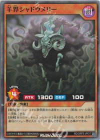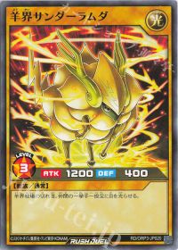 <羊界サンダーラムダ>2体でフュージョン!自身を守備表示にして魔法・罠を2枚破壊するという、<氷帝メビウス>に近い効果を持っています。