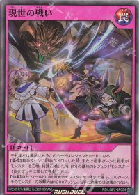 <現世の戦い>を引けるかどうかで結果が変わってくるかと思います。相手がカオス・ソルジャー不採用型であれば、<グランド・レジェンド・セイバー>で相手の場のリチュアルモンスター達を処理できますね!