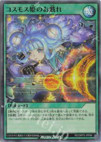 どのタイミングで引いても一定のパワーを発揮してくれる事に加えて、<コスモス姫のお戯れ>の手札コストも稼いでくれるカードですのでこちらを選びました!ここは自由枠なので入れ替えても問題ありません!