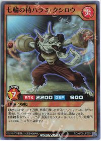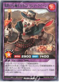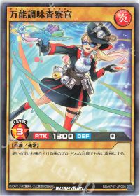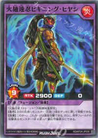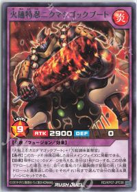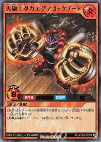 <火麺上忍ゴックブート>と<万能調味査察官>のフュージョン体!フュージョン召喚すると、墓地のレベル7炎族を特殊召喚しつつ、<火麺上忍ゴックブート>を出せば、相手のカード1枚を破壊!