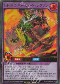 打点は低めだけど補助パンプが多いのでちゃんとアタッカーになれるいいカード。場に出したり<ミラクル・フュージョン>でデッキに戻したり反復横跳びが1番多いカードになります。大変そう...(他人事)E・HERO バースト・ウィングマン