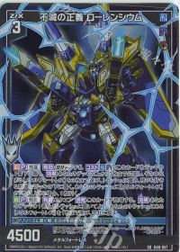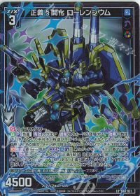正義なる運命ローレンシウム>は最強なのは間違いないですが、<絶対正義剣 ローレンシウム>でコスト3のメタルフォートレスを出してパワー11000になって耐えるというのも悪くないです。